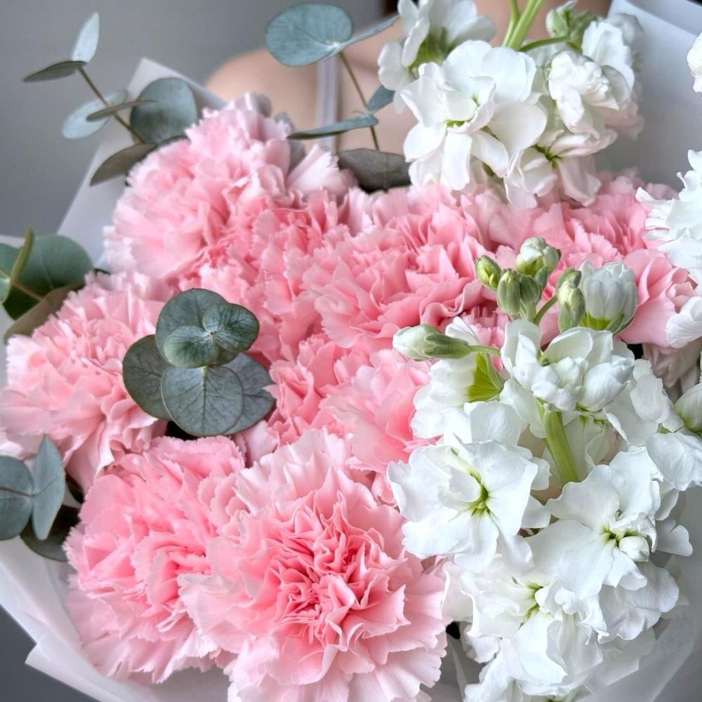 Нежный букет для деловой женщины из диантусов и маттиолы А046 в Макарьеве