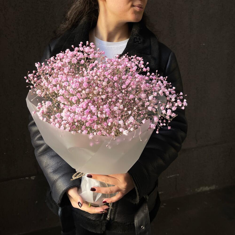 Букет 16: розовая гипсофила в упаковке в Макарьеве