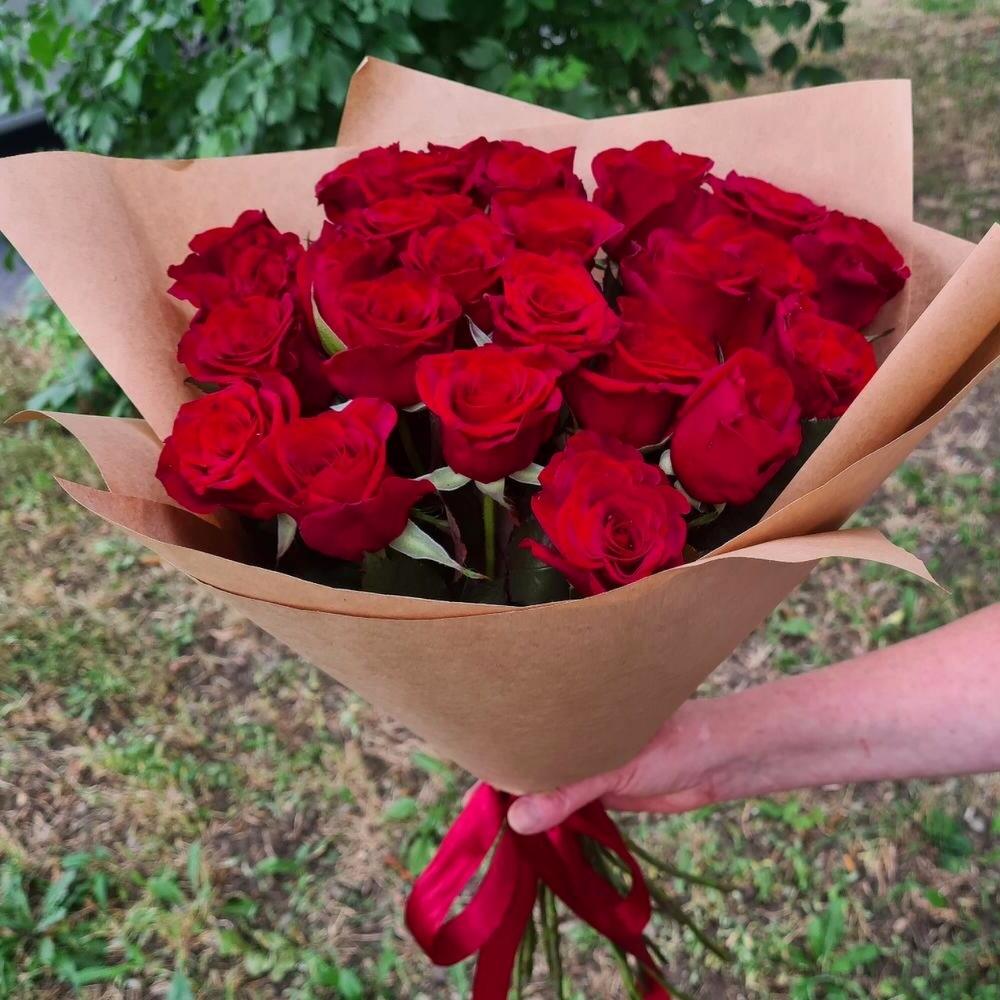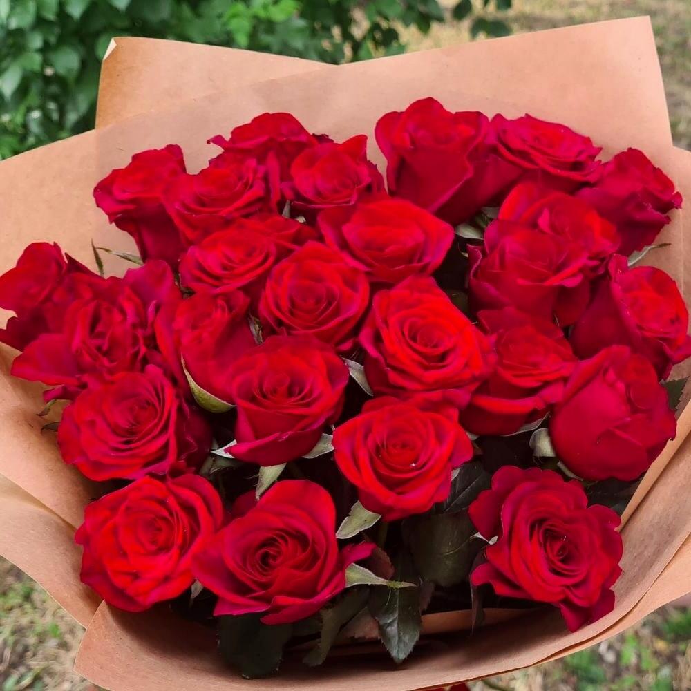 Букет из 25 красных роз в крафте для мамы А062 в Макарьеве