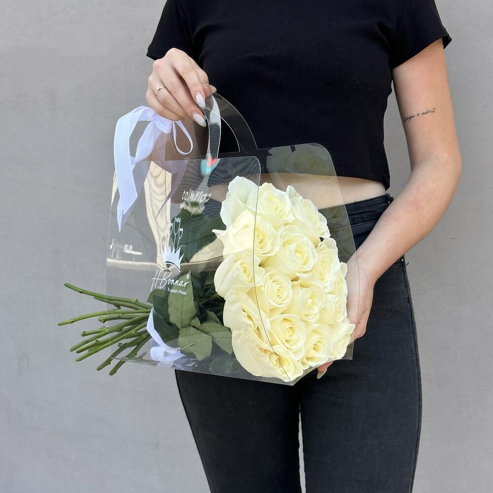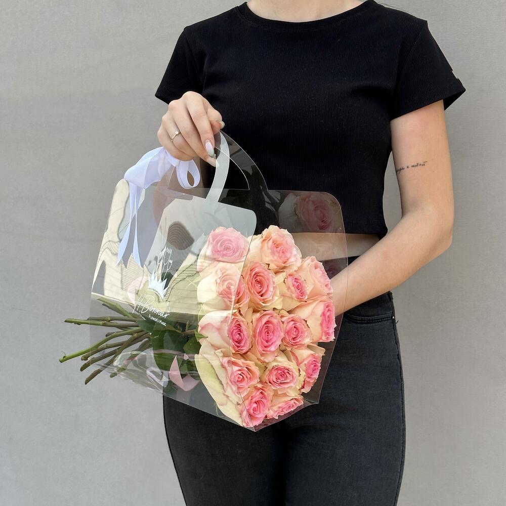 Букет из роз в сумке – изысканная композиция в удобной и стильной упаковке.