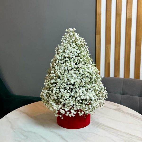 Новогодняя ёлка из гипсофилы. Будет отличным декором для новогоднего стола или интерьера. Эта ель точно создаст настроение нового года в любом месте. Ёлка из цветков гипсофилы это очень необычно и станет креативным дополнением новогодних украшательств.